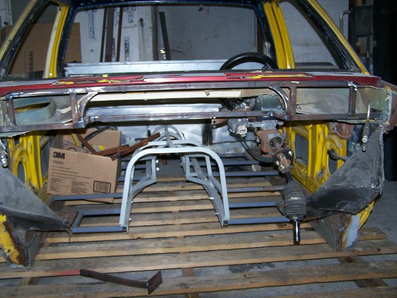 up front firestone 2600's belltechspindles tubular control arms (slightly modified) relocated strut rods four link w/ 2600's mounted to custom 2x3 rear narrowed clip