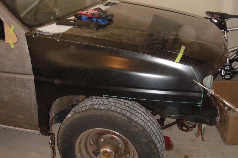 Frontier front end 4X4 fenders front and rear flaired into sides of bed.Shaved everything except bodyline.Body drop to doors.Long bed conversion.