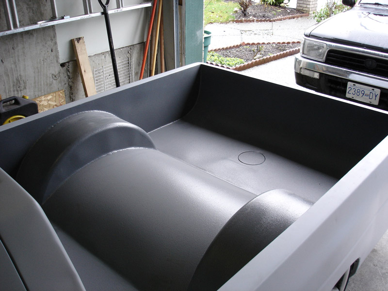 Shaved rear with led tail lights, 4x4 fenders, new hood, smooth toyota bumper, home made phantom grill, h4 headlight conversion, body dropped, custom dump box on bags.