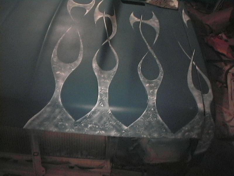 full shave suicide doors unibodied porshe turqoise blue w/ skulls , flames and graphics