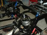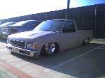 body dropped, back-halved, 4 link-bags on bars, stock bed floor, stainless hard lines in rear all done by "Slammy" was workin at Insane Designs, then Killer Ridez....not sure where he's workin now...