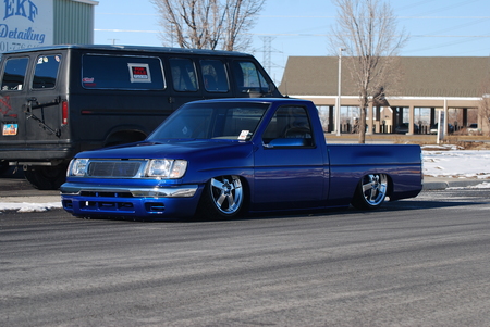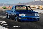Bagged front and rear. Relocated front strut bars, 4-Link and bags over the axle in the rear.