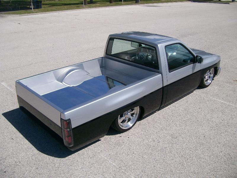 3" Body Drop .Shaved squirters, Handles, 3rd brake light, antenna,cowl, 4x4 fenders...Shaved Tailgate, Roll Pan , skinned bed trailor fenders, Polished Aluminum Bedfloor with Removable center section. Custom Tailgate Handle