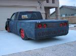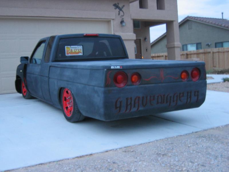 5" widebody (front), 2001 Pathfinder front bumper, shaved corners, antenna, & doors, side markers, custom grill, Shaved Tail, R-34 Skyline Taillights, 1 piece lexan back window with frenched plate box, custom 2" spiked front plate & signals