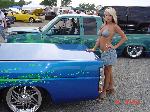 Shaved handles, 3rd brake light, emblems, antenna, roll pan. Graphics done by Charles Armstrong. All body work, base color, and buffing done by owner.