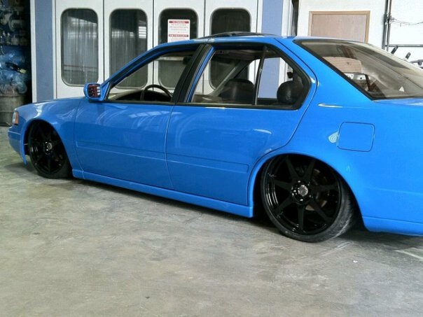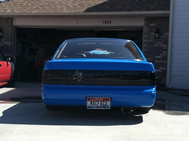 Shaved handles, 2010 Mustang Grabber Blue paint. Blacked out taillights.