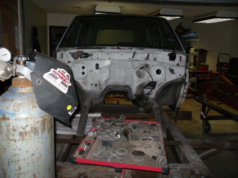 full frame with custom arms and custom 4 link. ballistic fab rod ends, heims on the control arms and ball joints from cando. mustang ii rack