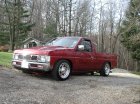 chrome handles, painted wipers,painted fiberglass flush mount tonneau,fiberglass cowl hood,roll pan, no more chrome bumper, euro tailights, 96 nissan front bumper and grille, bed has custom enlosure design and sports a red tweed decore. Orignal paint except for items listed