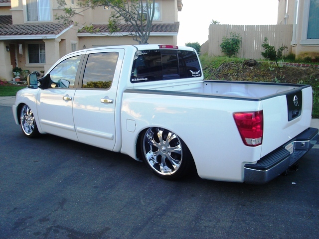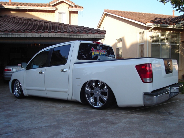 BAGGED. STANDARD BAGS MOUNTS IN FRONT. PARALLEL 4 LINK WITH PANHARD BAR IN REAR. BAGS OVER AXLE. PLUMBED WITH 1/2" PARKER AIRLINE AND PUSHLOC FITTINGS. (4) 1/2" GC LIFT VALVES, (2) 1/2" ASCO DUMP VALVES (REAR), (2) 3/8" SMC DUMP VALVES (FRONT). (2) VIAIR 480C COMPRESSORS. (1) 5 GALLON TANK AND A HUGE NITROGEN BOTTLE! A 9 ROCKER AVS SWITCHBOX. PROPS TO SCD FABRICATIONS IN SAN MARCOS, CA