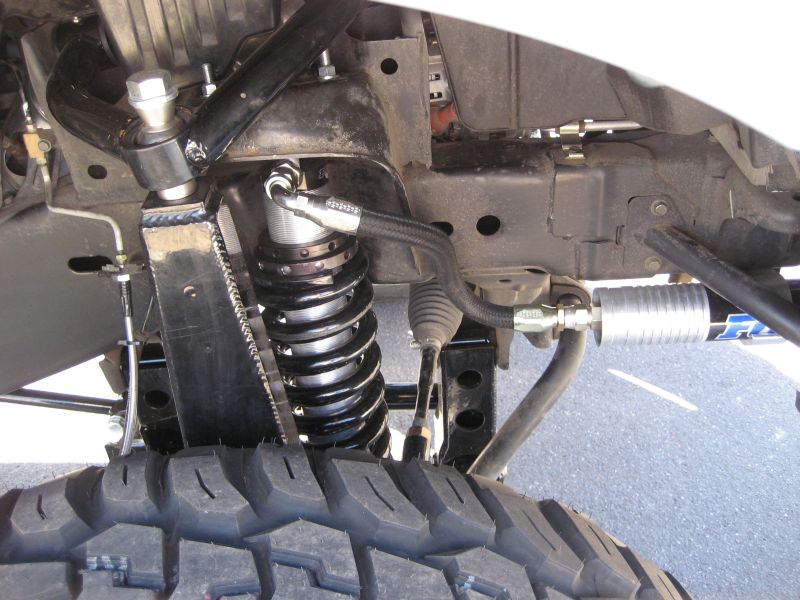 12" Bullitproof lift w/ uni-ball upper a-arms and Fox coilovers up front. The rear has Atlas leafs and Fox res. shocks.