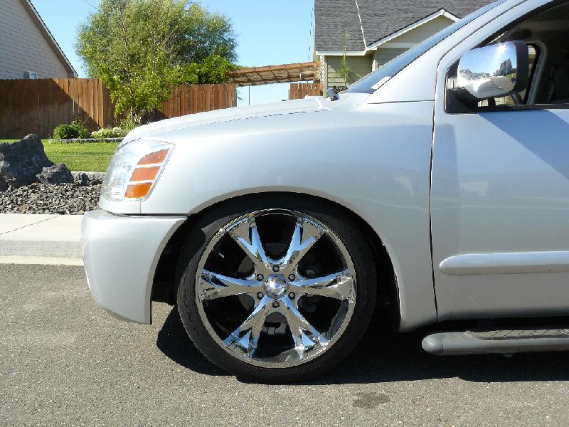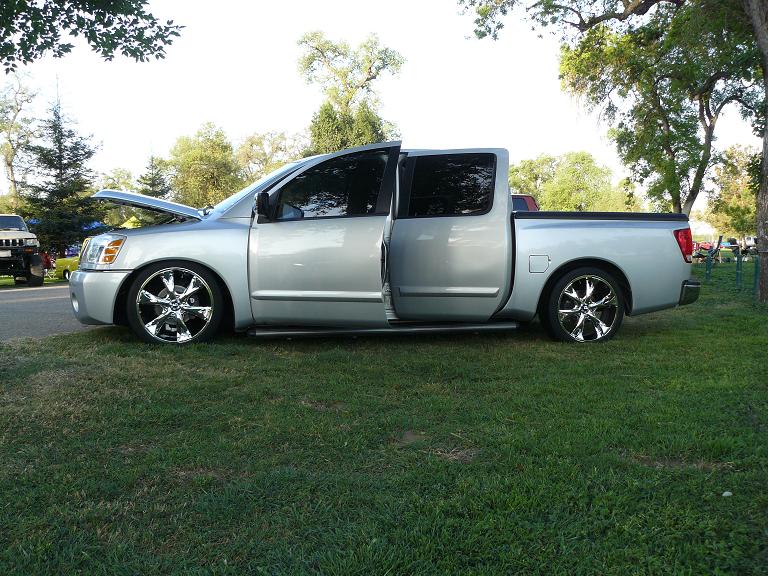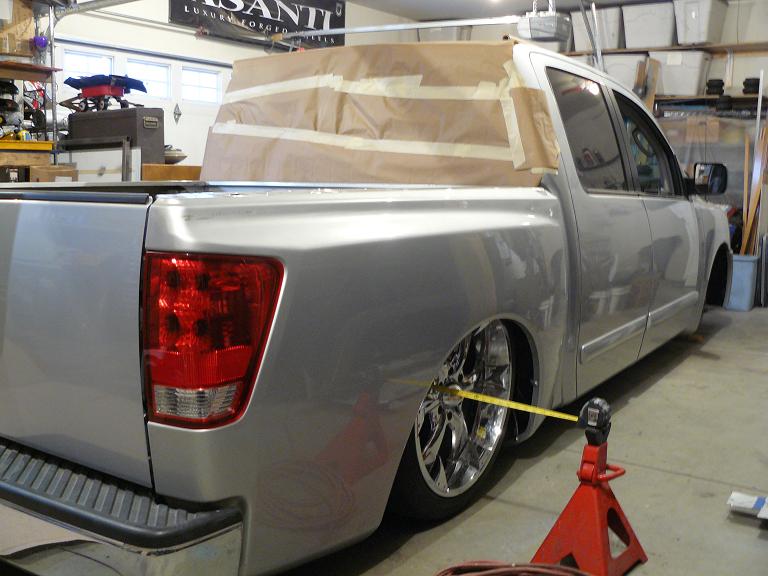 Cut springs in front--and Custom built knuckles built by Max of Bio Kustomz.. sitting on bumpstops, camber adjustment maxxed.