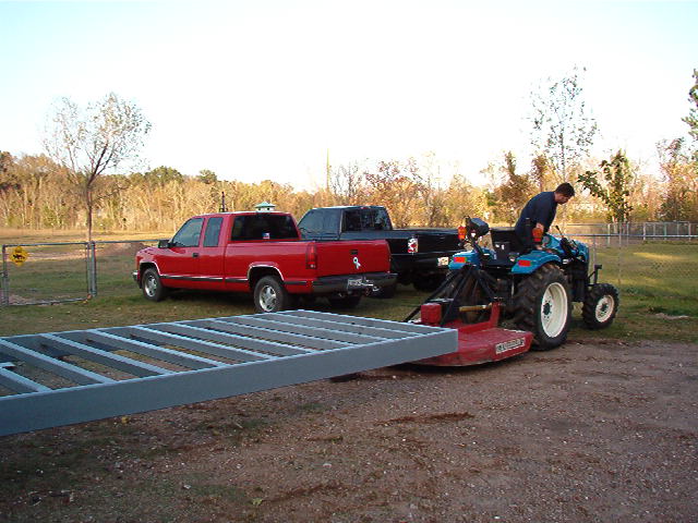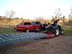 40 foot deck gooseneck trailer that lays flat on the ground with a hinged dove tail so no ramps will be needed