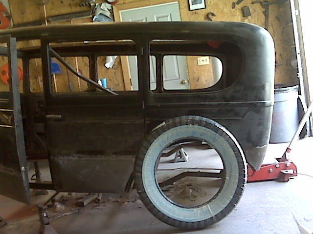 1932 Ford 17" spokes w/ Tall bias ply Firestone White Wall tires.