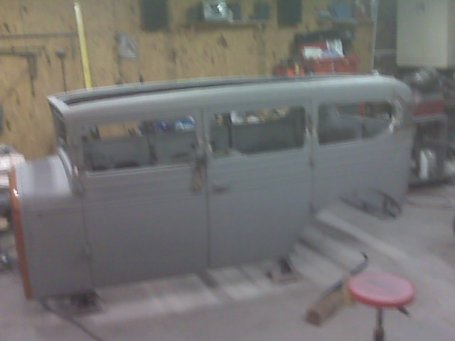 a little bent, a little rusty, a little rough, mostly silver. ford headlights, caddy grille.