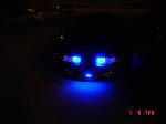 BLACK,with clear corner markers,blue turn signals,blue streetglow under body neons,blue strobes in the headlights,exhaust
