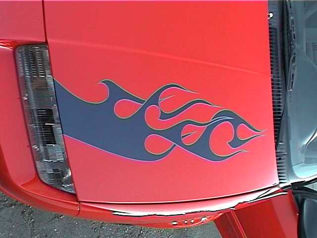 HOC Orange mixed w/chevy red w/ purple/blue flames outlined in grey