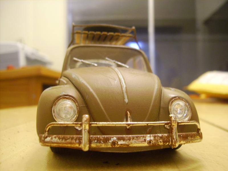 Full fake patina///Nothing shaved//Painted primer gray with a flat brown topcoat//sanded through in high areas//ALL hand painted rust in the usual places//complety hand scratch built roof rack out of 8 gauge metal bailing wire///with real balsa wood slats//also patina'ed