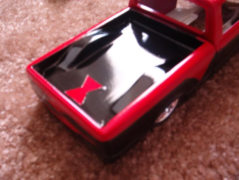 96 explorer front clip, shaved door handles, bodyline, gas door. moulded skin and shaved tails. chrome explorer bumper, explorer hood, painted in a "black widow" theme, but will be changing to red and silver two tone