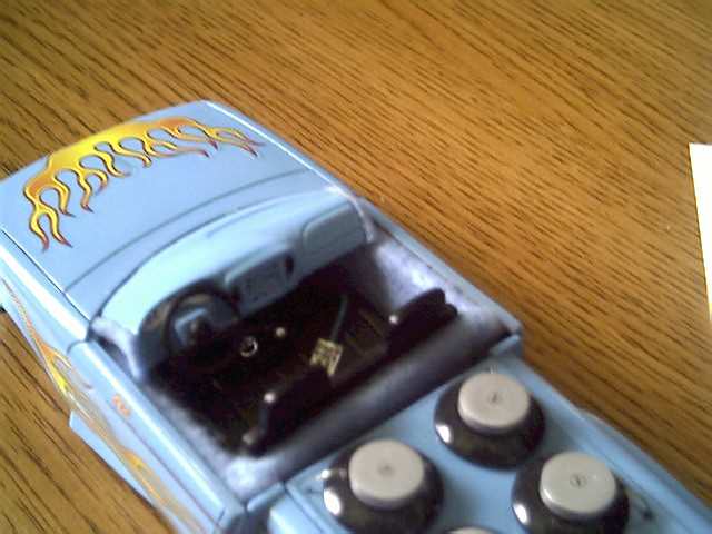 shaved headlights, all handles. painted baby blue. with flames.