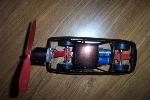 This is a project I had to build for a high school physics class. We had to construct a small vehicle powered by an electric motor and a fan. I used the body from a model Integra and built the frame from aluminum.
