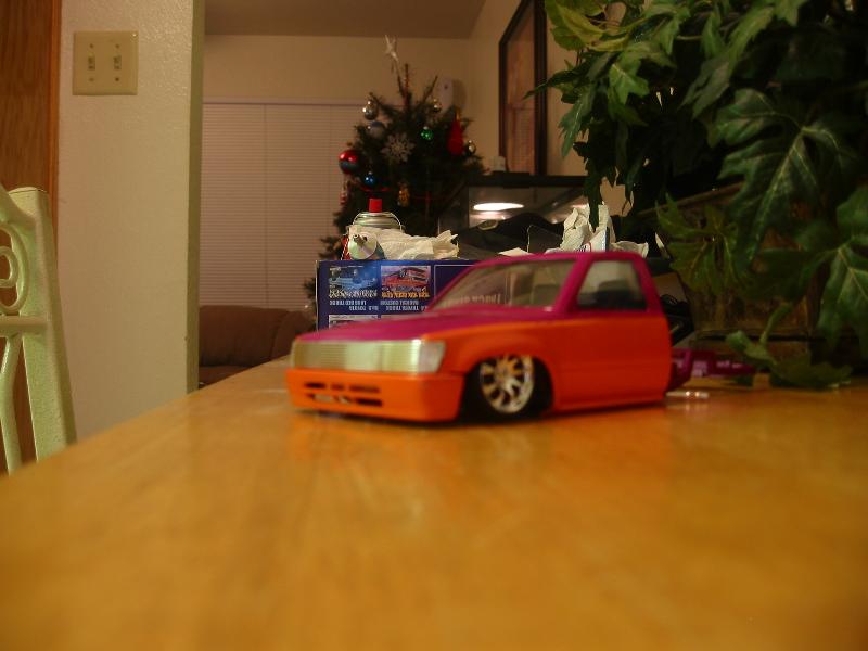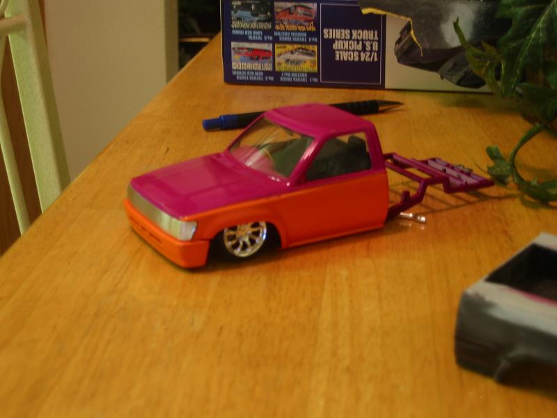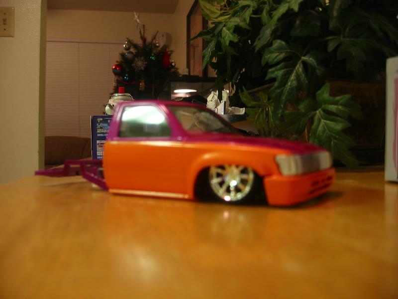 shaved bumper, door handles, shaved ass end, half capped bed to mauch my real truck