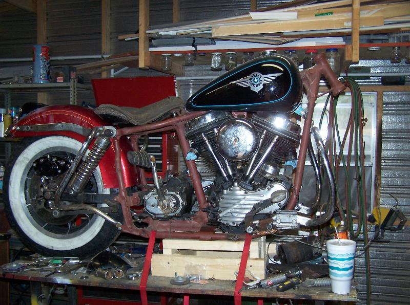 50's VW tail light cut to fit,rear fender is a late fl front fender turned backwards and cut to fit,1 peice fat bob tank,