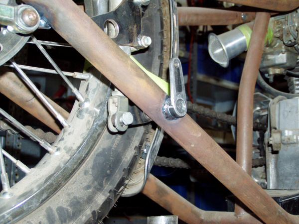 21" x 1.4" front rim (hard to find) on a custom hub to use dual 5" quad rotors. 19" x 1.8" rear rim (started life as a front) on a custom hub.