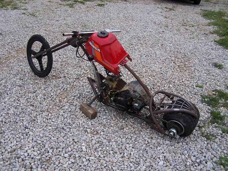 85" long, curved upper and lower backbone, 56 degree rake, 3 wheeler gas tank for now, building a new tank now, spiderweb gusset, and seat pan, jackshaft, and rigid as a mofo. Drag bars Tops out at 54 MPH