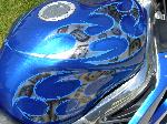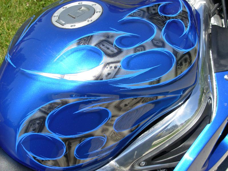 GRAVITY CUSTOM PAINT, CUSTOM BLUE MIXED BASE WITH DESIGNS ALL OVER, PALYING CARDS AIRBRUSHED IN THE DESIGNS, SHADOWED, STRIPED,ALL CLEARED OVER