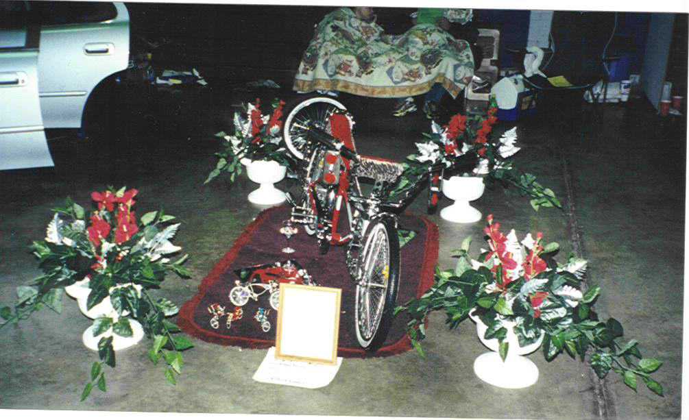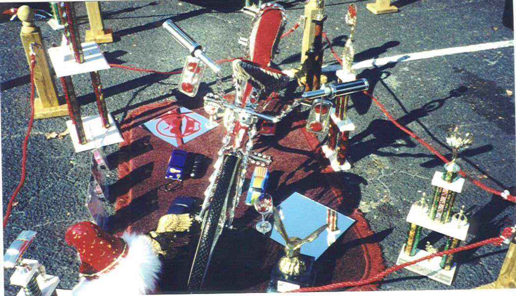 OUTSTANDING OF SHOW AT SOUTH CAROLINA NATONALS, FIRST AT WHITLEE SHOWS, FIRST AT LA DRAG IN, FIRST AT OLD SCHOOL RYDERS SHOW,FIRST AT SUMMER BASH AT THE BEACH,LOWRIDER scrapin tour 2002 2nd place street custom bike AND MANY MORE