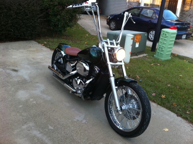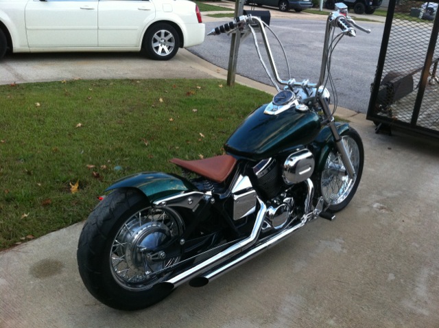 Custom green paint, Custom fenders, ape hangers with custom grips, removed reflectors and turn signals, custom leather springer seat, Chrome billet tag holder/ led brake light. + more