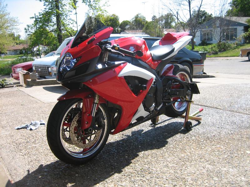 Took off the stickers and the damn mud flap that holds the licence plate! Added Shogun no cut sliders. Painted fenders and side tank pieces.