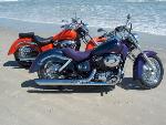 Rizoma raked billet triple tree up front(5 degree),& Custom made billet lowering kit in the rear.