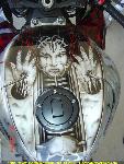air brush everywhere, molded and shaved bodywork,crg levers, vortex rearsets, targa seat cowl and mirrors, intergrated taillight, custom tag bracket