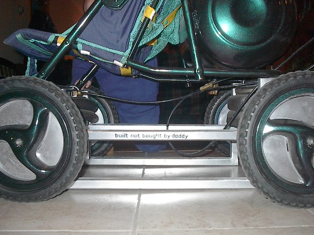 Fully Air Bagged for front to back. All 1/4" lines plummed into some old ass MIC manual valves. Also have a 5 gallon air tank with the words, "DROPPED AT BIRTH", on it. The entire frame is hand built with 1" square tubing. The entire frame lays out and gets a good 7-8" of lift.