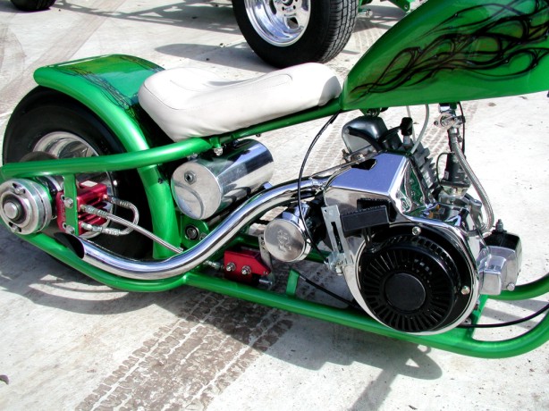 6 hp Tecumseh for now. my neighbor is working on a 5 hp Briggs block that will be gettin about 45 hp