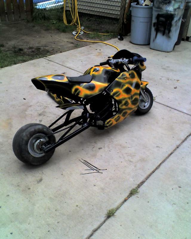 front and rear Firestone sleeve bags, 2 paintball gun air tanks, custom rear stretched swingarm