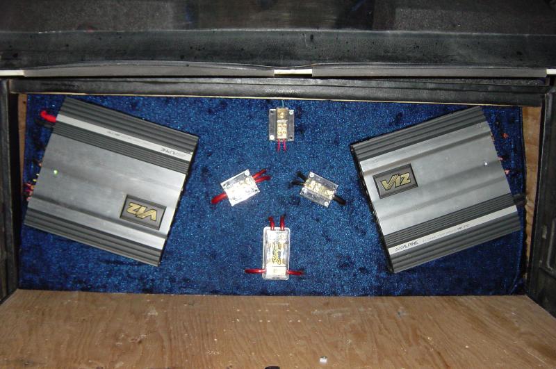 Alpine 9815 head unit, Alpine cva 1005e tv, and Alpine indash DVD player.2 Alpine R DVC 12, 2 Alpine MRV707 amps. Lil Alpine 4 inchers in the front an Alpine 6x9 in the rear
