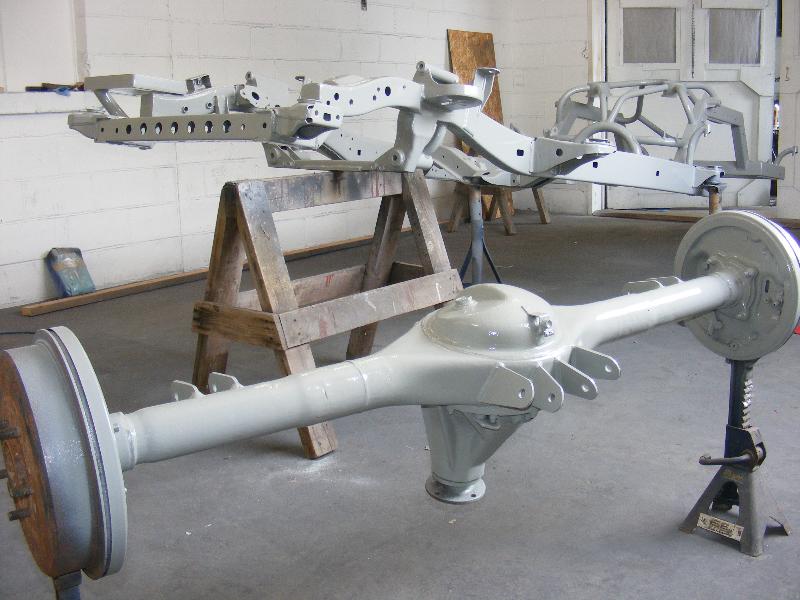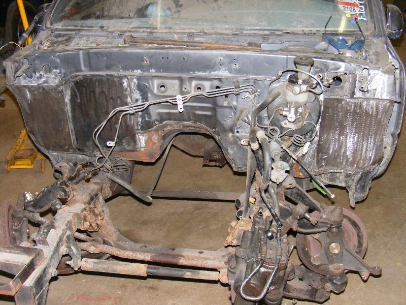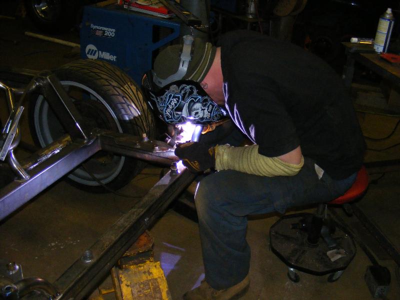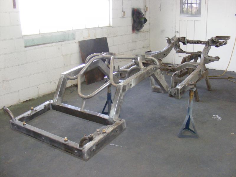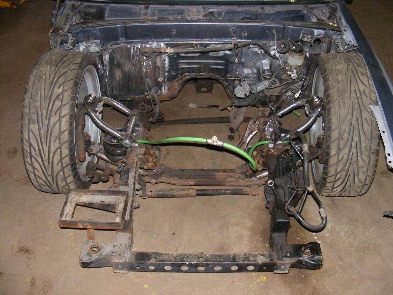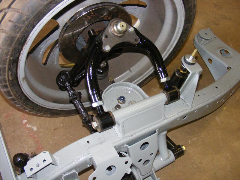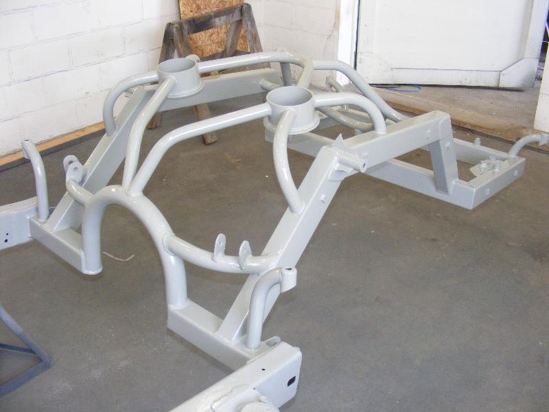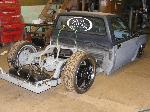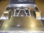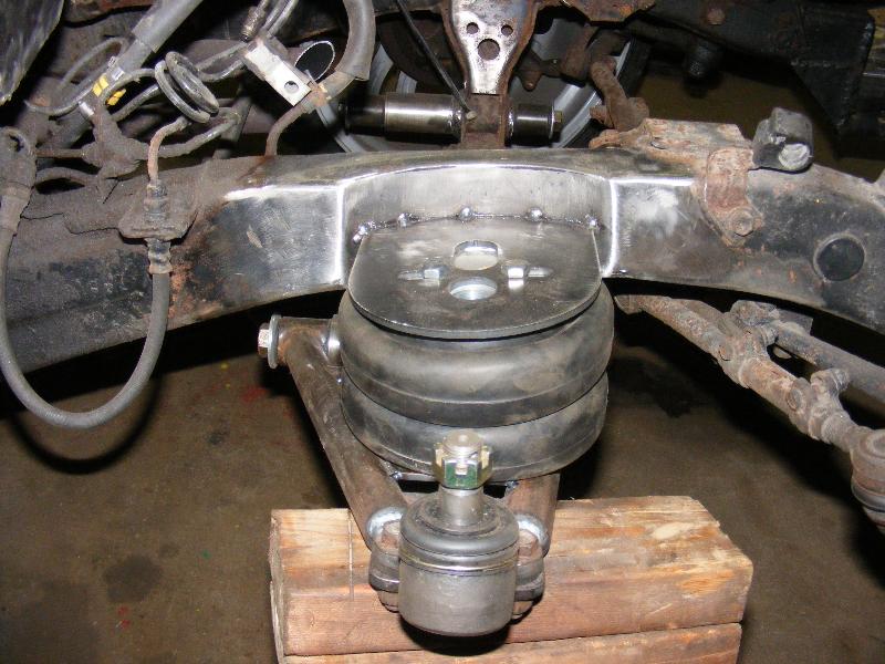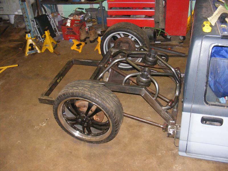 bags...tubular uppers and lower control arms...custom back half also used as air storage...cusom made 4-link...bags on upper bars...frame smoothed, sandblasted, and painted