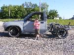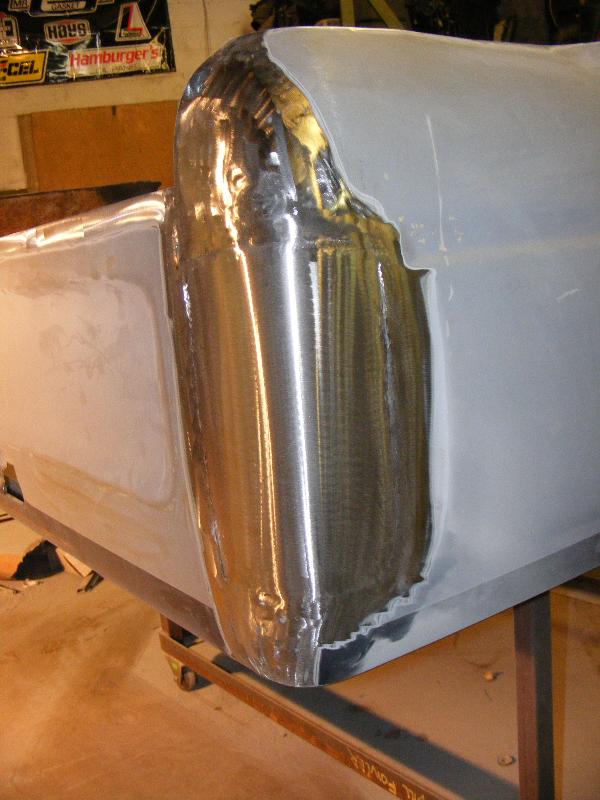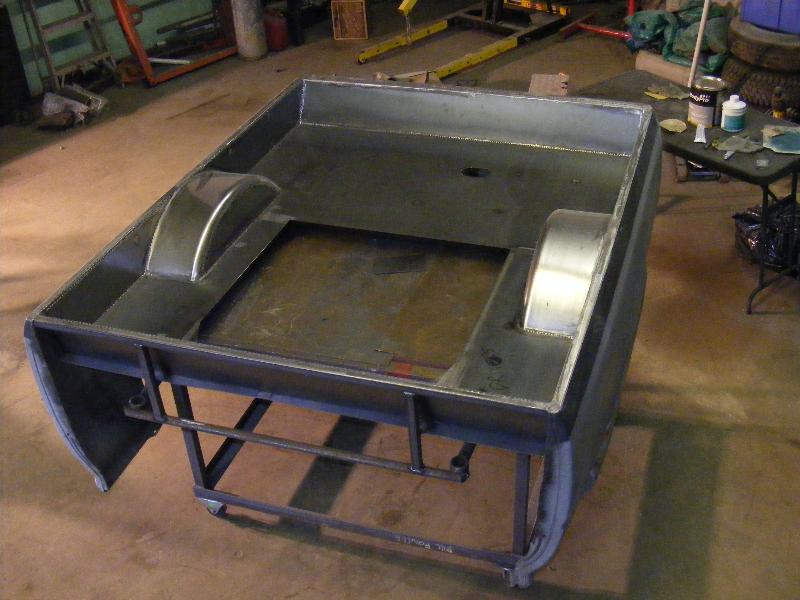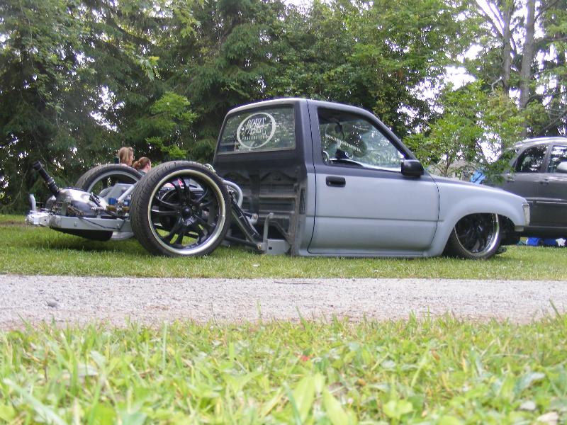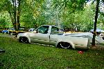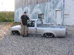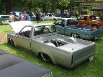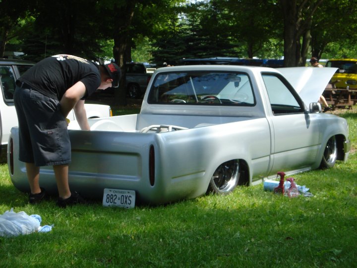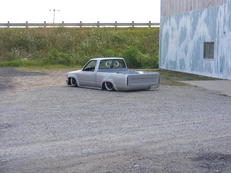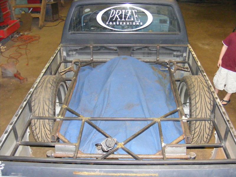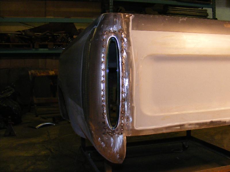 shaved firewall, antenna, handles, gas door, rock guards, full sheetmetal bed, molded stock tailgate , custom tail lights, hand made roll pan....