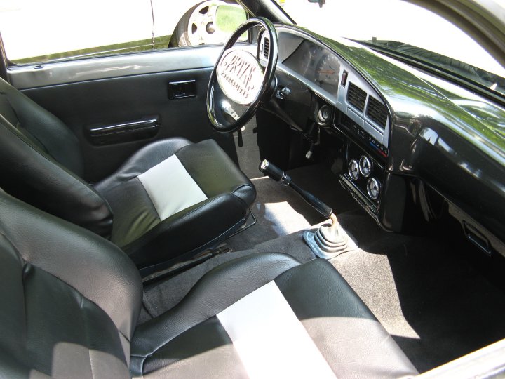 smoothed and painted dash, custom club steering wheel, integra seats recovered by me, recoveres door panels