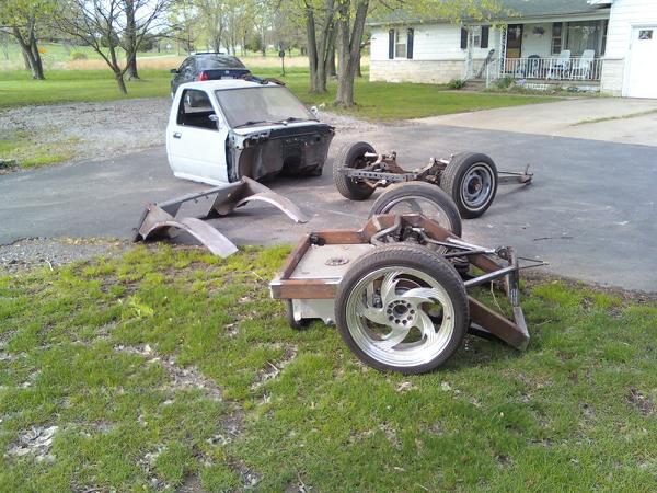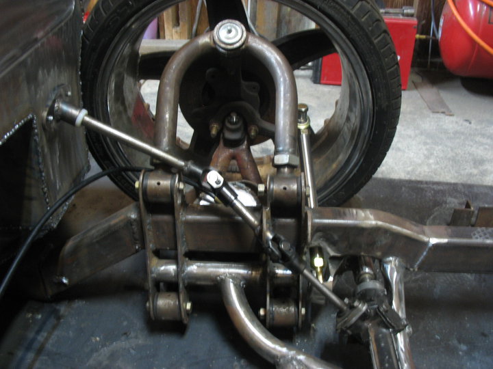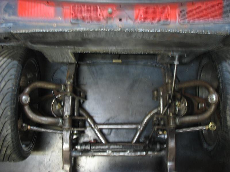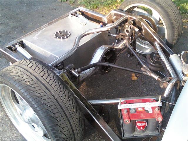 Hand made chassis by owner, custom control arms, air tank back half, wishbone link, and bodydrop. rear disc brake conversion, and mustang manual rack n pinion conversion. Custom tierods and adapters, and custom spindles and steering rods