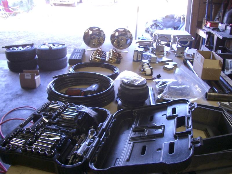 Bagged all the way around. 2 Chrome 4 gallon tanks with 2 viair 450's, 1/2 inch line and 1/2 SMC valves.