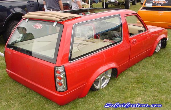 82 toyota front,93 blazer top,handbuilt quarter panels,fullsize chevy tailights,full sliding rag,etc.