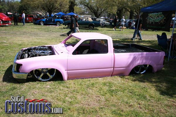 3inch stock floor/2inch traditionial, firewall smoothed, tubed, roof chopped, bed shorttened, fully shaved, 4runner grill/headlights