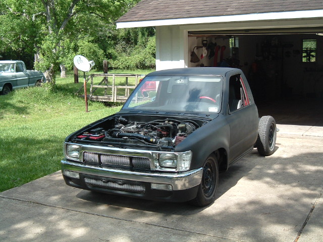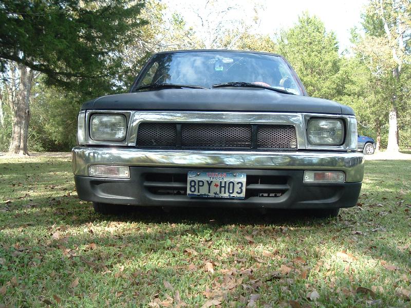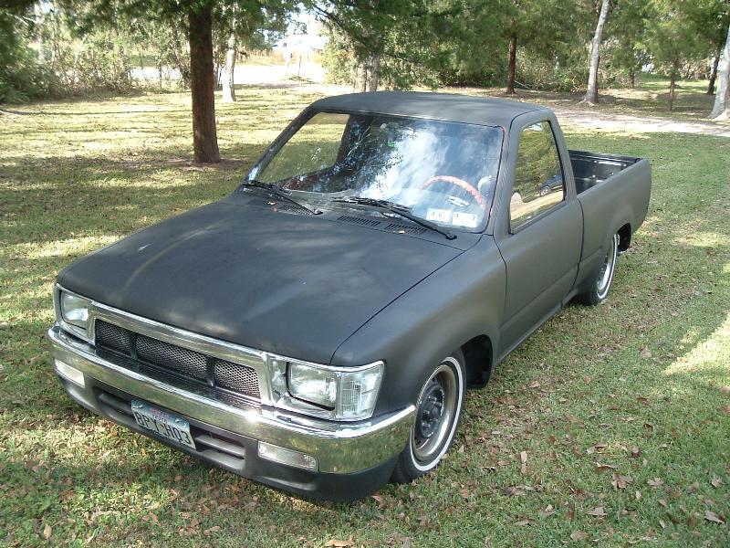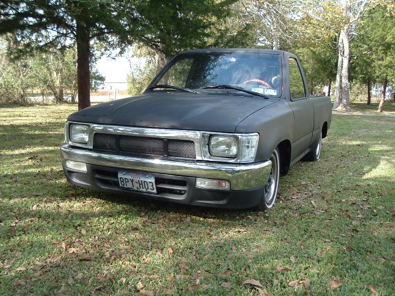 Semi-Flat Black Krylon. Clear lights, 92-95 4Runner bumper, 89-91 4X4 chrome grill cut/modified and fitted with mesh, 4X4 fenders.