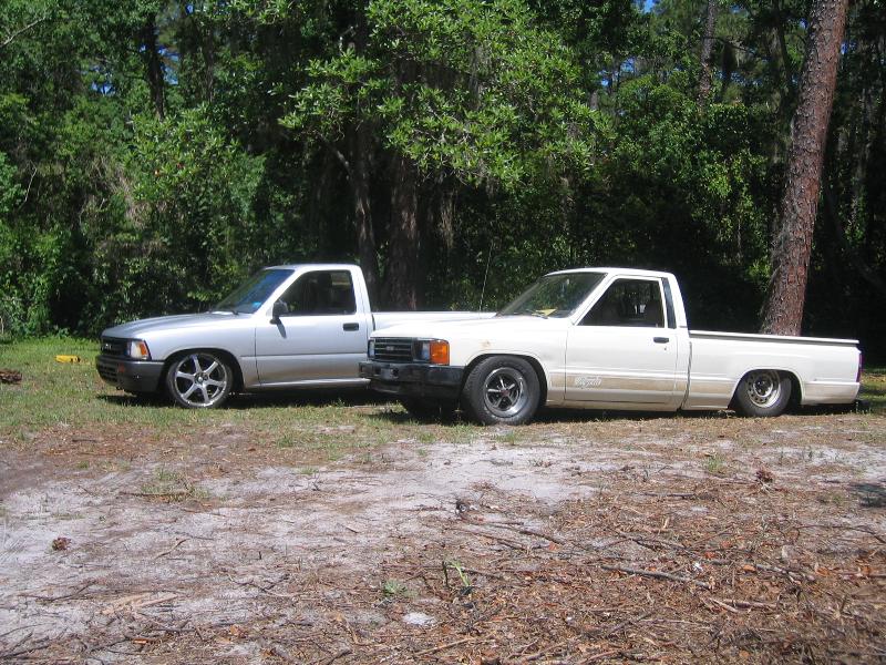Stock up front for now. in the back 2 linked, with slam specialities HE-7's, with asco nickel plated 1/2 valves. Only 2 for now gonna have 16 when the trucks fully done.