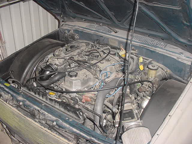 22RTE turbo, auto trans,bigger TEC turbo, ported exhaust housing, intercooler,blow off valve and 390cc injectors. Sectioned oil pan.More later.