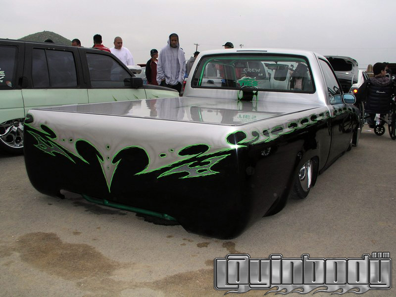 After getting all of his custom bodywork completed, Josh went even further by painting his own truck using Glasurit Silver, and laid out his own design for the truck using a custom mix of green paint for the truck's graphics.
