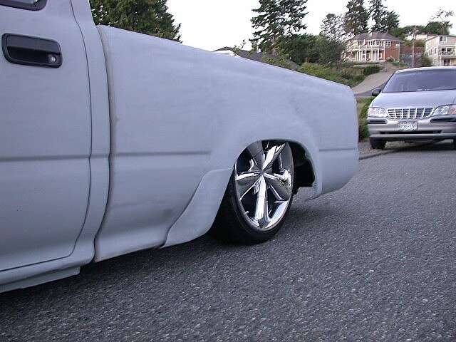 4 by fenders, clear corners and bumpers, 92-95 chrome front end. some primer. Shaved door handles.